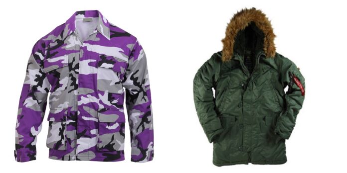 Over the years, Army jackets, like other military outerwear, have been made from a wide range of materials and textiles. Many of them are natural, like cotton, linen, wool and leather, and some are synthetic, like polyester and vinyl.