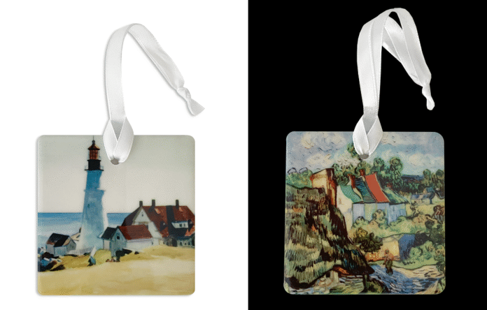 Imagine mini versions of Starry Night nestled in evergreen boughs or Irises echoing the rich hues of late autumn. These pieces double as festive décor and daily reminders of beauty, drama, and color.