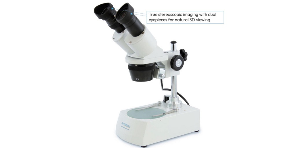 A dissecting microscope, also known as a stereo microscope, is a type of microscope designed for viewing objects at low magnification. Instead of flattening everything into a single image, as many traditional microscopes do, it uses two separate optical paths. This gives the viewer a three-dimensional view which feels more natural and easier to understand, especially for children.